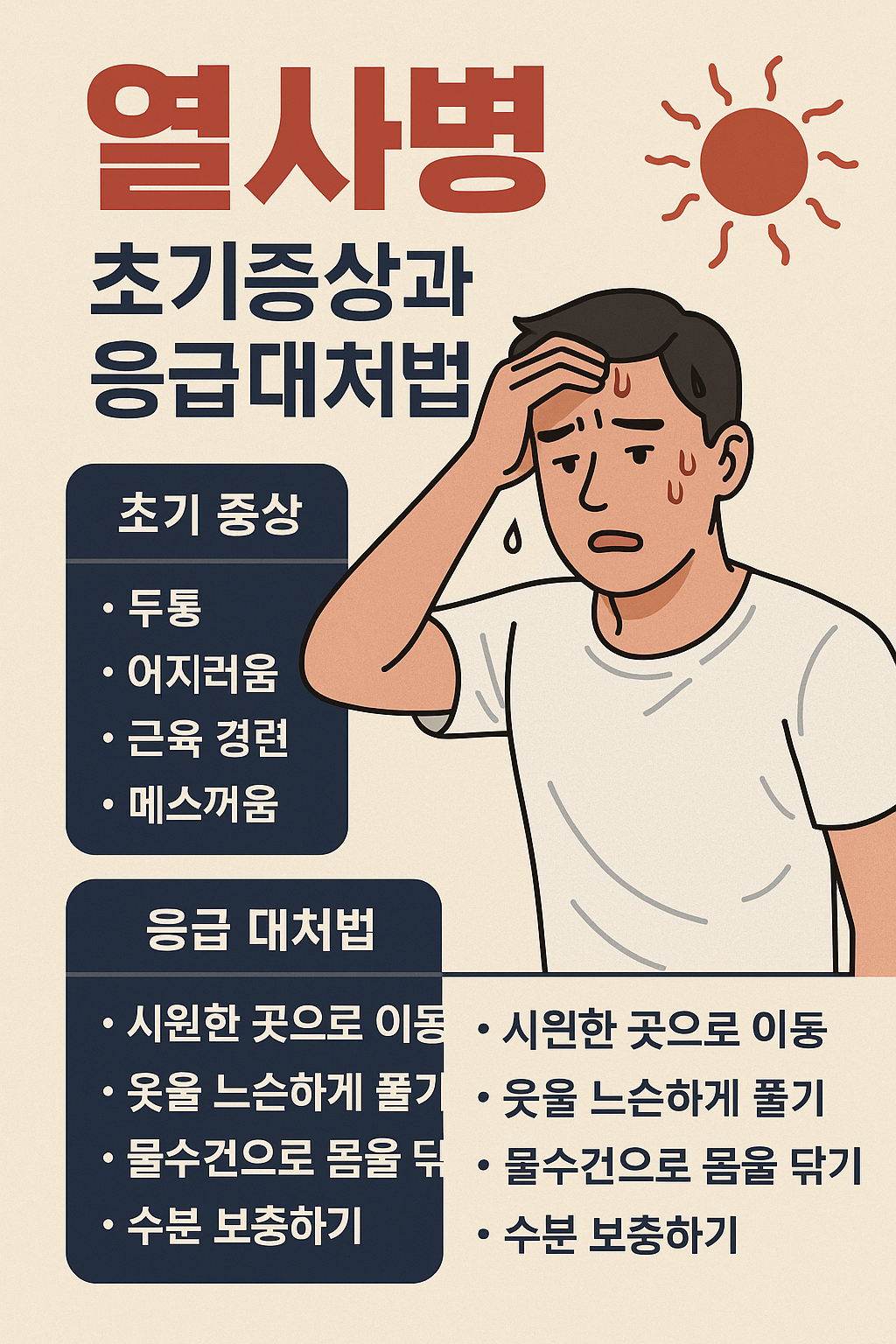 이 글에서는 열사병의 정의부터 초기증상, 응급처치 방법, 예방 수칙까지 꼭 알아야 할 내용을 정리해볼게요. 여름 더위에 쓰러지지 않도록 미리 대비하는 것이 가장 중요한 건강 습관입니다.
