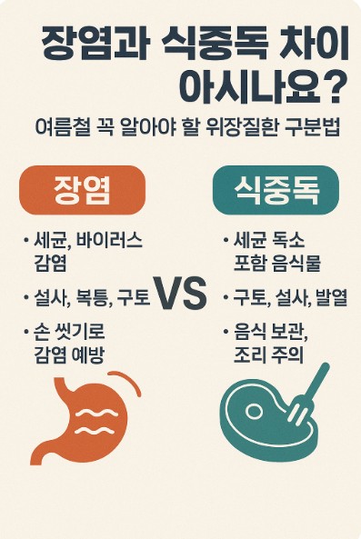 이 글에서는 장염과 식중독의 차이를 명확하게 구분해서 설명드릴게요. 또한 어떻게 하면 빠르게 증상을 파악하고 적절한 대처를 할 수 있는지도 알려드릴게요. 여름철 건강을 위해 꼭 알고 있어야 할 정보예요!