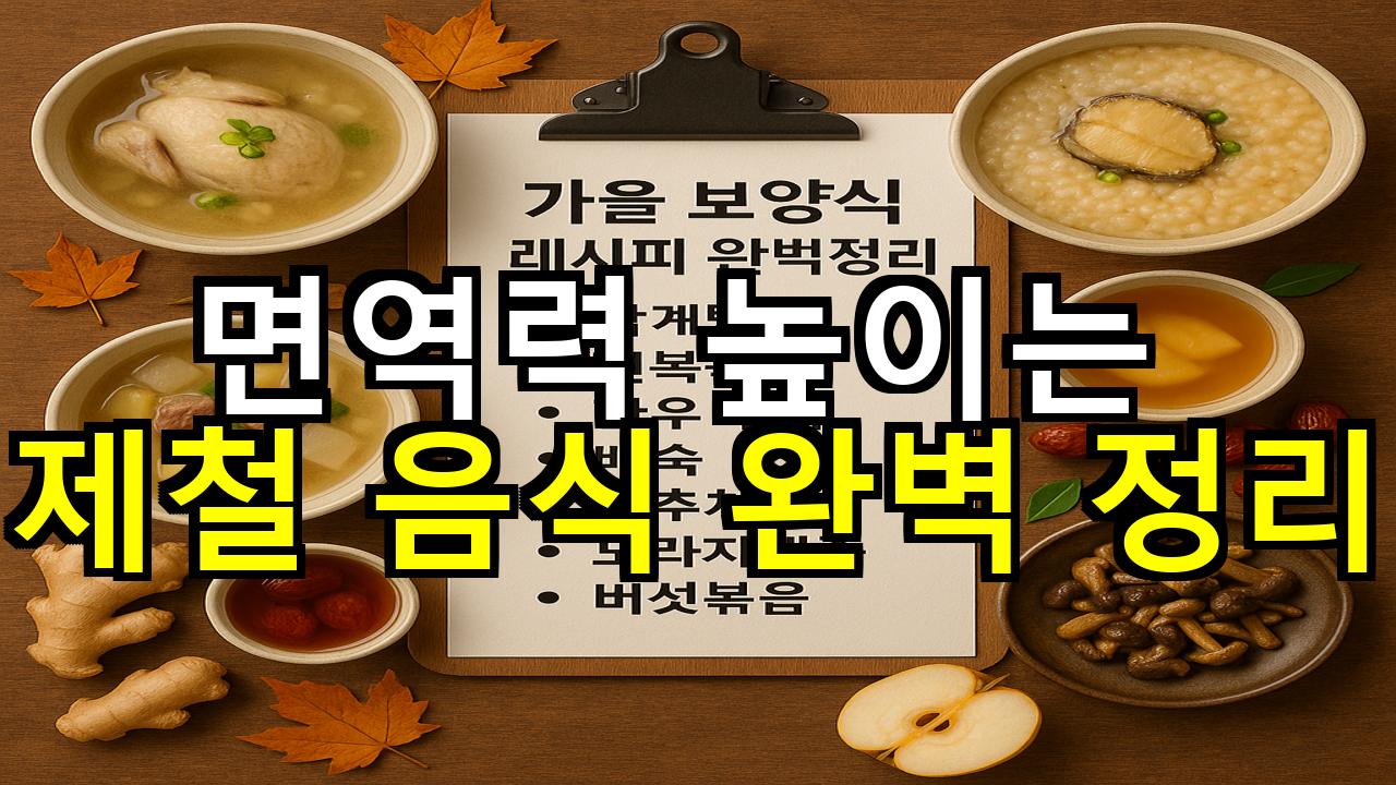 가을철 건강관리의 핵심은 바로 '온보양'이에요. 따뜻한 성질의 음식으로 몸을 데우고, 영양가 높은 재료로 면역력을 높이는 거죠. 특히 단백질, 비타민, 미네랄이 풍부한 음식을 섭취하면 환절기 건강을 지키는 데 큰 도움이 돼요.